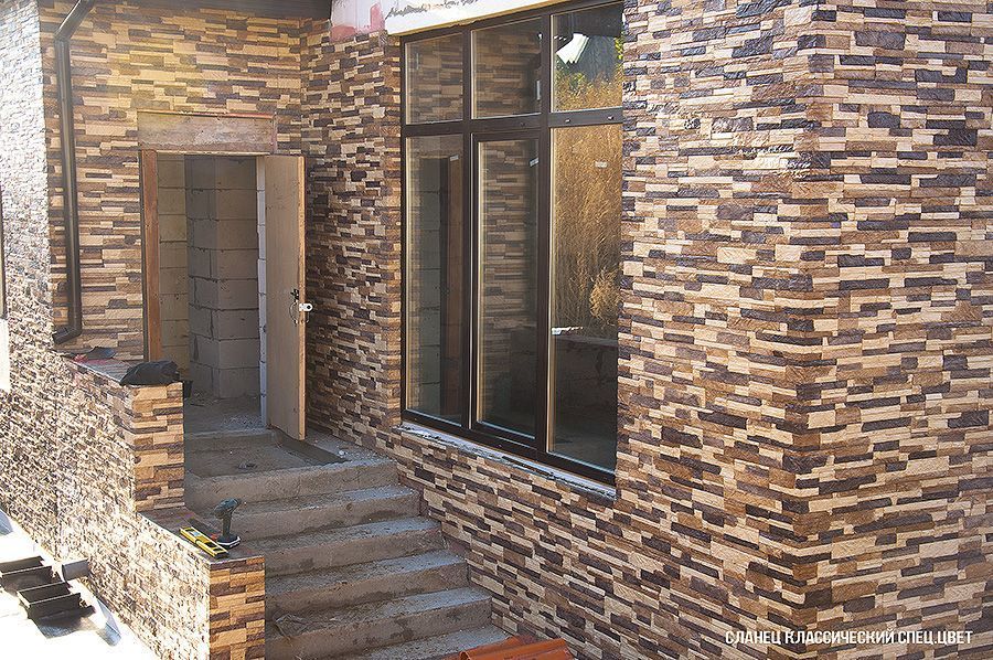 Искусственный камень "Сланец классический" укладывается встык без швов.